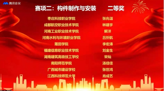 12月15日,2021年全国行业职业技能竞赛--第四届全国装配式建筑职业技能竞赛“装配式建筑施工员”赛项总决赛获奖名单公布,土木工程系参赛选手2020级建工3班的吕忻航获得二等奖,2020级建工3班白万宇获得三等奖。