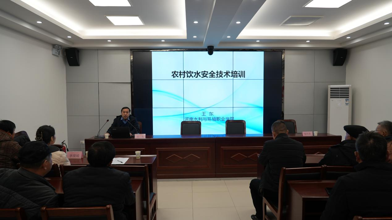 3月5日上午,在平舆县水利局,水利工程系教师王东为干部职工开展了农村饮用水安全技术培训,从农村供水发展、水管员的职责、供水应急事故、供水系统、水质检测、管道管网、反馈问题处理等方面对农村饮水安全工作进行了详细讲解。