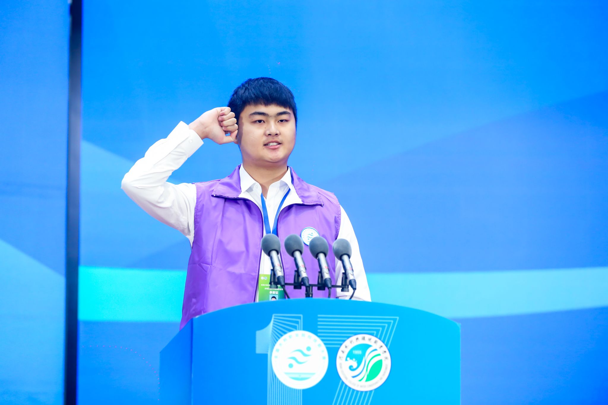 裁判员代表、工程测量高职组赛项第三方裁判组组长、河南理工大学魏峰远宣誓