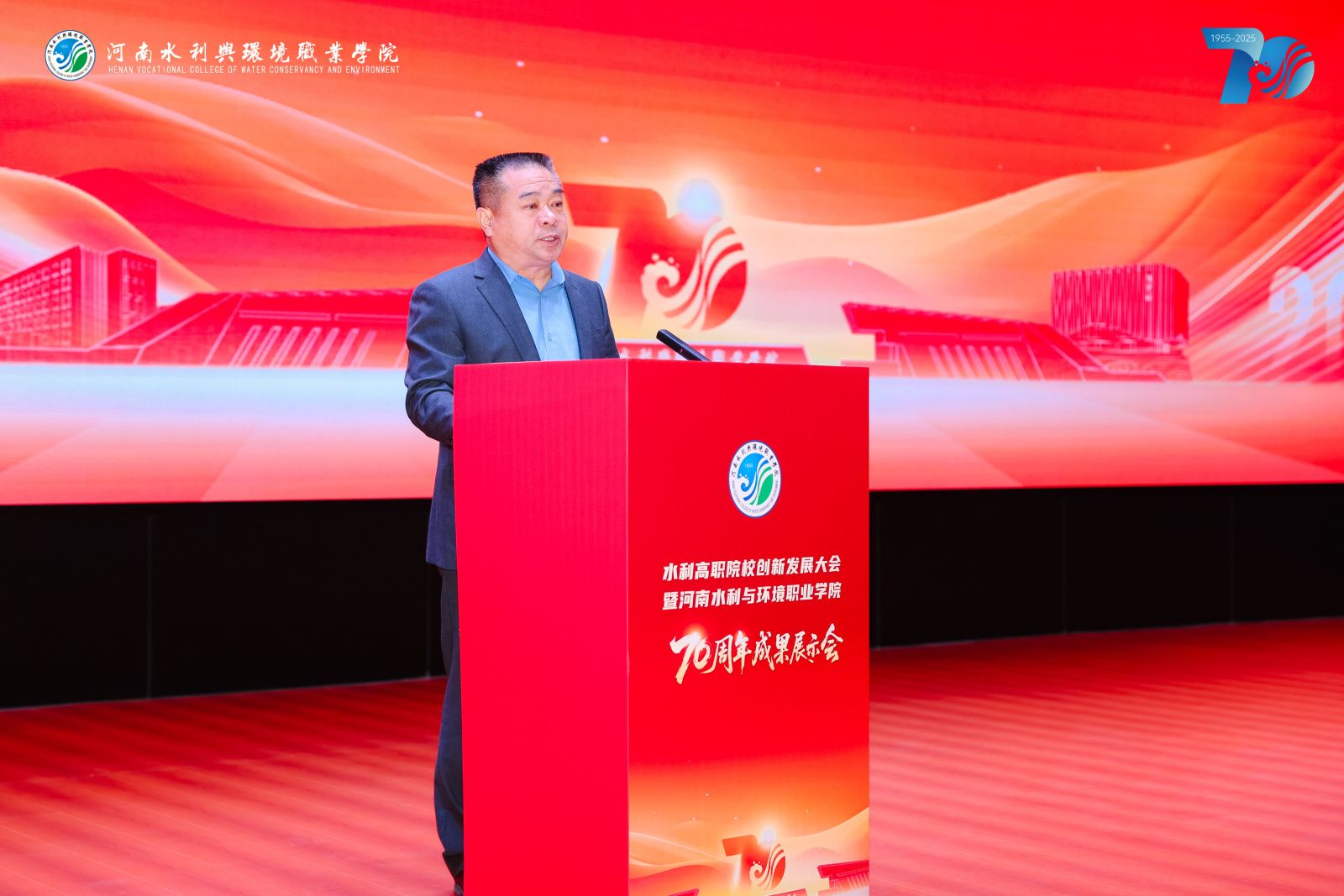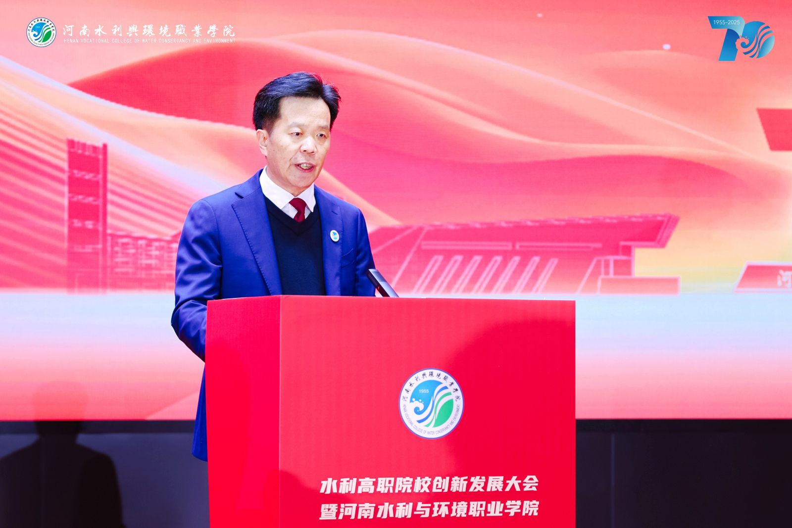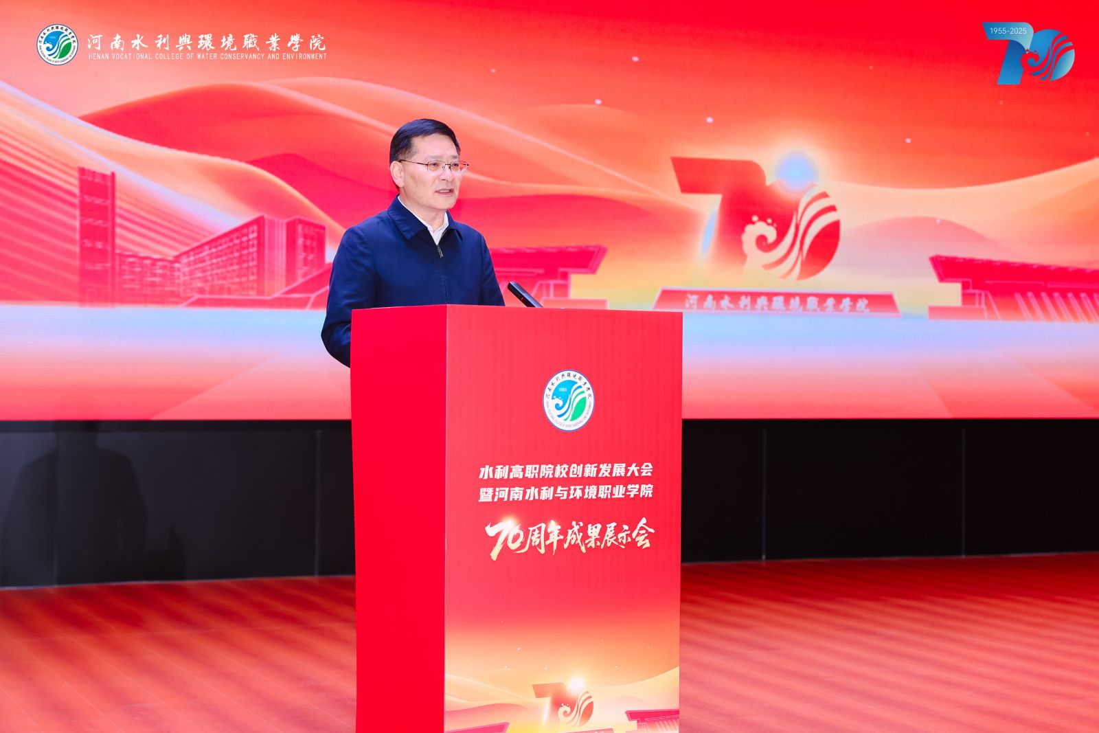 河南省教育厅党组成员、省委教育工委专职副书记刘林亚在致辞中表示,“在职业教育发展进程中,河南水环学院始终立足中原大地,聚焦产业需求,为区域经济发展培养了大量下得去、留得住、用得上的高素质技能人才。希望学校以建校70周年为新起点,承七秩基业,开未来新篇,展现更大作为。”