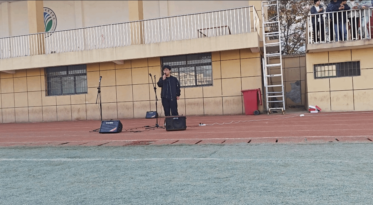 11月15日下午15点30分,第二场汇报演出在学校的操场上正式拉开帷幕。整场演出由合唱团和音乐社的各位同学呈现。微风正好,秋日暖阳下,校园音乐爱好者齐聚绿茵场,在旋律与欢笑中开启一场青春艺术盛宴。演出伊始,郭意恒以独唱《你还要我怎样》的细腻声线点燃现场,田紫涵随后带来《第57次取消发送》,温柔唱腔里的青涩情绪引发全场轻和;高祯康演绎的《孤独患者》则以低沉质感传递共鸣,将氛围推向第一个高潮。合唱节目同样亮点迭出:田紫涵与高祯康搭档的《只对你有感觉》甜度满格,尹晨斌、魏珂合作的《天后》以默契和声展现舞台张力;刘豫州的《嚣张》、张星浩的《这条小鱼在乎》以鲜明个人风格收获掌声,王锦运带来的《瞬》则用清澈嗓音定格秋日温柔时刻。压轴环节,多元风格的表演在观众的荧光棒与欢呼中落下帷幕。