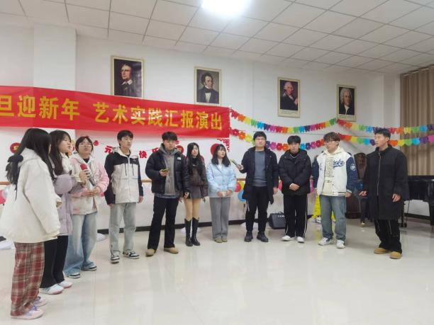 活动内容丰富多彩,歌曲、乐器弹奏、舞蹈、朗诵等节目精彩纷呈。有深情演唱的歌曲、技艺高超的乐器弹奏、异域风情的少数民族舞蹈,也有情怀满腹深情诉说的朗诵,还有展现泱泱中华盛世国貌的作品。比如古筝合奏《盛世国乐》、合唱《灯火里的中国》、朗诵《青春中国》《黄河之水天上来》等,莹莹之间感受到祖国的昌盛与繁荣,闻之、观之、叹之,激动与骄傲充斥在每个人的心中。节目中间还穿插着“抢凳子”“你划我猜”的趣味游戏,学生情绪高涨、积极参与,使活动更具趣味性。演出结尾处全体师生共同高唱“新年祝福歌”,彼此传达着友爱,诉说着祝福。