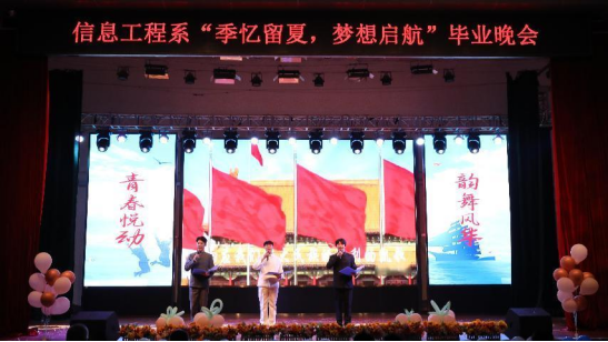 6月4日,信息工程系“季忆留夏,梦想启航”毕业晚会在花园路校区礼堂举行。校党委副书记、副校长蒋彦成,党委副书记、工会主席魏义军,各系部和有关处室负责人、信息工程系全体师生共同观看演出。