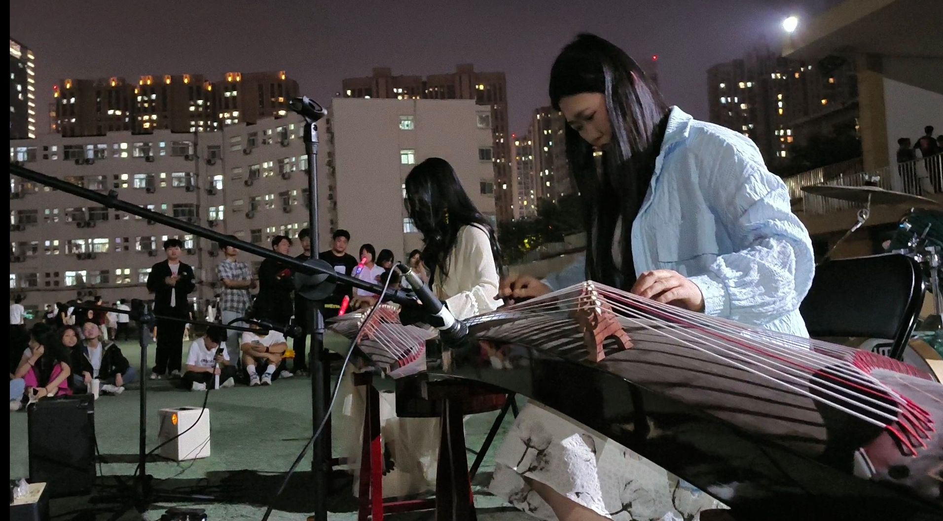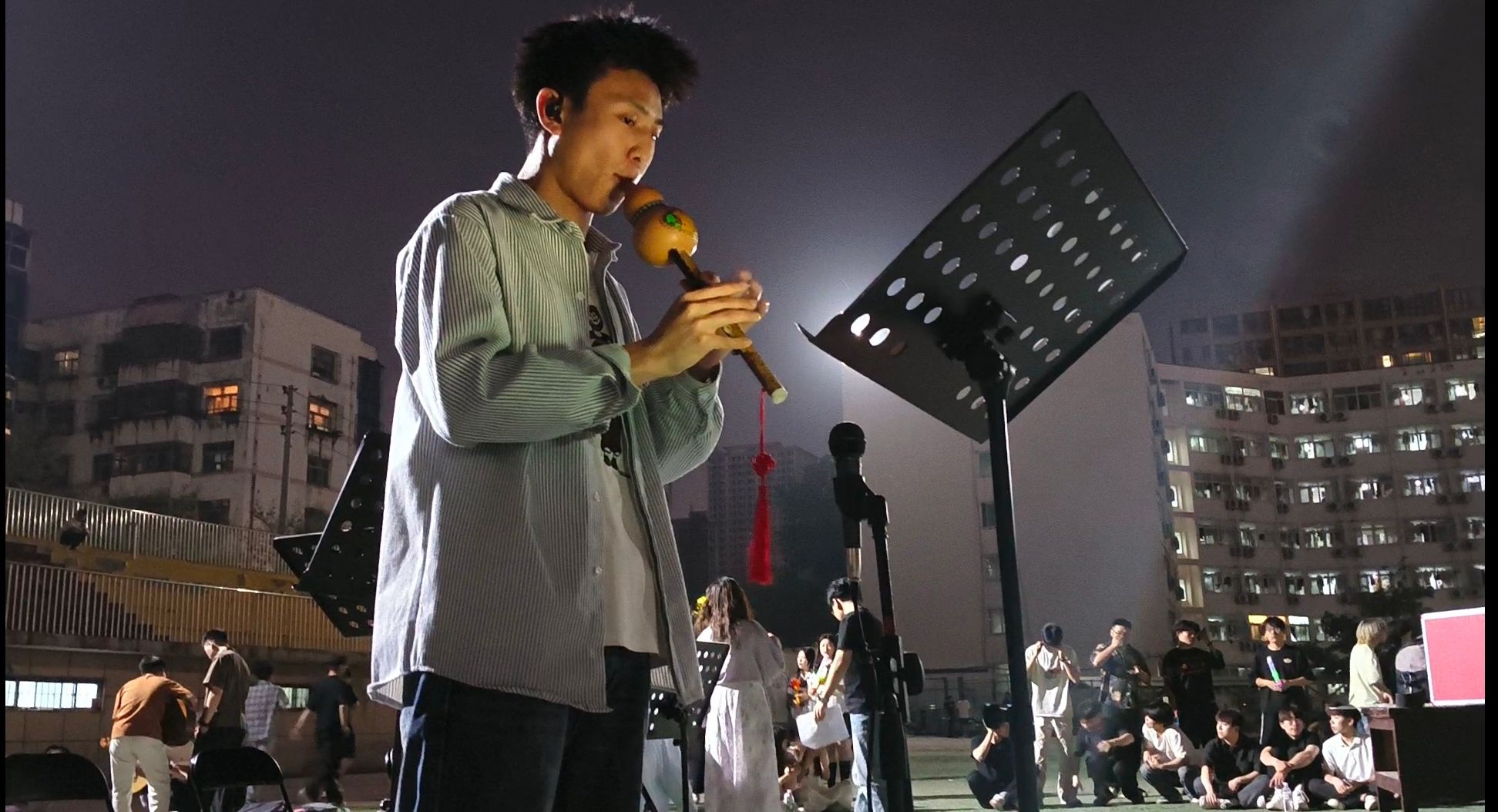 随后,器乐班众多乐器和乐队轮番上阵。有萨克斯和单簧管演奏的经典曲目《天鹅湖》、有葫芦丝演奏旋律悠扬的《月光下的凤尾竹》、有古筝演奏的古风曲目《骁》,优雅的旋律在草坪上空回荡,让人们沉浸其中;充满激情的乐队带来根据歌曲《逆战》《着魔》改编的串烧,以及《河流》、《静止》、《红色高跟鞋》等歌曲,他们的表演极具爆发力,吉他手的炫酷独奏、鼓手的激情敲击,让现场观众热血沸腾,尖叫声和欢呼声此起彼伏;更有深情的民谣吉他乐队,他们带来的《我们的时光》、《鼓楼》等歌曲,用温暖的嗓音讲述着一个个动人的故事,让观众在音乐中感受到生活的美好与温暖。